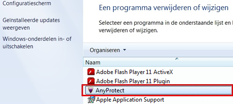 Mocht je alleen de configuratiescherm feature kunnen verwijderen, dan wordt het aanbevolen om regelmatig je systeem te checken voor AnyProtect-componenten die waarschijnlijk nog op de computer staan. Scan je system regelmatig met een beveiligingstool die je vertrouwt zodat je er van verzekerd bent dat de malware succesvol is verwijderd.